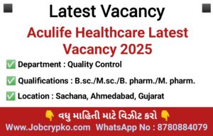Aculife Healthcare Walk-In Interview 2025 | Production, Packing & QA Jobs in Ahmedabad | 11th October 2025