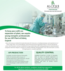 Alivus Life Sciences Walk In Interview 2025 on 21st June 2025 For Production and QC Department at ankleshwar Location. To keep pace with our expansion of plant, we require young …