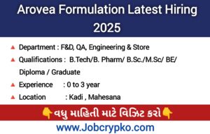 1. Arovea Formulation Latest Hiring 2025 Vacancy Details 2. How to Apply in Arovea Formulation Latest Hiring 2025 Interested candidates send your cv on Email- hr@aroveafpl.com & WhatsApp …