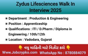 Zydus Lifesciences Walk In Interview 2025 On 30 & 31 July 2025 For Production & Engineering department Apprenticeship Positions at Vadodara Location. 1. Latest Job Vacancy in Zydus …