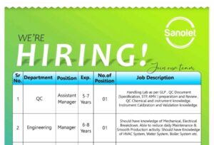 Sanolet Lifecare Job Openings 2025 | QC, Production, Engineering, Packing & QC Micro Department Vacancies