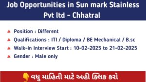 Sun mark Stainless Pvt Ltd Job opportunity In Chhatral.