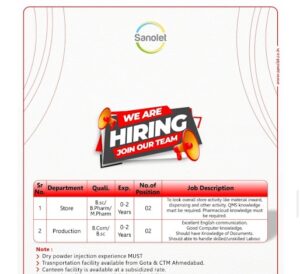 Sanolet lifecare Vacancy 2025 For hiring Store and Production department at Ahmedabad location. 1. Job Vacancy in Sanolet lifecare Vacancy 2025 2. How to apply in Sanolet lifecare …