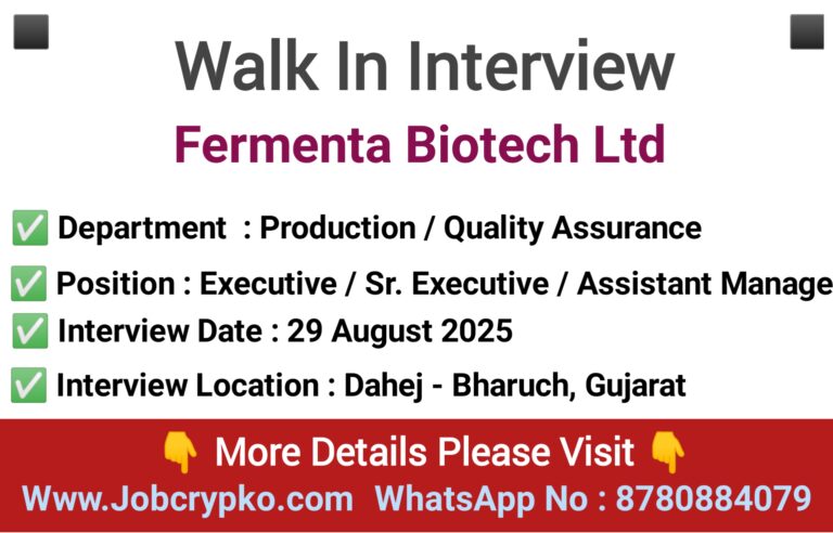 Fermenta Biotech Career Fair 2025 : Are you looking for a new role in the pharmaceutical sector? Here’s your chance! Fermenta Biotech Ltd (FBL) is organizing a career fair on 29th August 2025 (Friday) at Dahej, Gujarat.