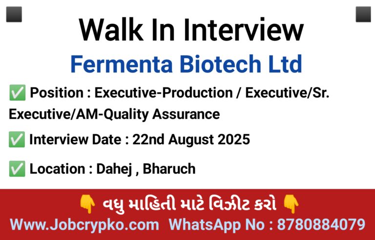 1. Job Vacancy in Fermenta Biotech Walk In Interview 2025