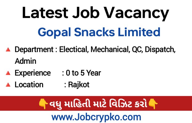 If you are eager to work in a fast-paced, innovative, and growth-oriented environment, then this is the right time to apply. Let’s take a detailed look at the job specifications, benefits, and open positions available at Gopal Snacks Limited.