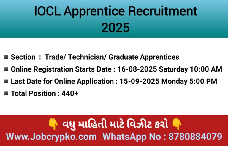 IOCL Apprentice Notification 2025 Release : 16-08-2025 ( Saturday)
