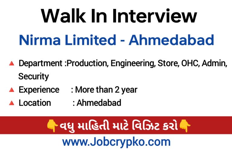Nirma Limited Walk In Interview 2025 Conduct on 25th August 2025 for Fresher & Experience person at Ahmedabad location.