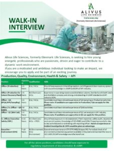 Alivus Life Sciences Walk in Interview 2025 For Leading API Production & Engineering Department at, Dahej, Gujarat