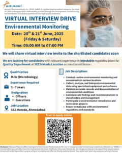 Amneal Pharma Virtual Interview 2025 for excellent job opportunities inย ๐ค๐๐ฎ๐น๐ถ๐๐ ๐๐ฒ๐ฝ๐ฎ๐ฟ๐๐บ๐ฒ๐ป๐ย at our SEZ Matoda Injectable manufacturing Plant.ย 1.Job Vacancy Details in Amneal Pharma Virtual Interview 2025 2. Interview …
