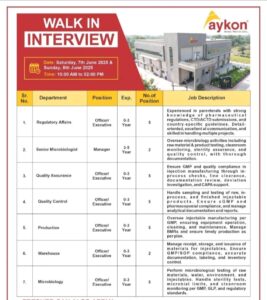 Aykon Biosciences walk in interview 2025 for QC / QA/ RA/ Production/ Microbiology and Warehouse Department at Kheda Gujarat location. 1. Job vacancy in Aykon Biosciences walk in …