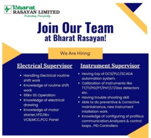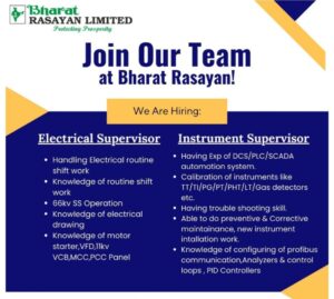 Bharat Rasayan Hiring 2025 For Electrical and Instrument Positions Dahej location. 1. Latest opening in Bharat Rasayan Hiring 2025 2. How to Apply in Bharat Rasayan Hiring 2025 …