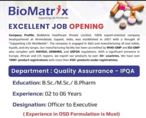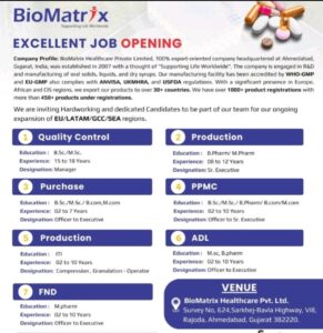 Company Profile: BioMatrix Healthcare Private Limited, 100% export-oriented company headquartered at Ahmedabad, Gujarat, India, was established in 2007 with a thought of “Supporting Life Worldwide”. The company is …