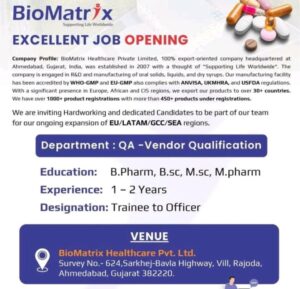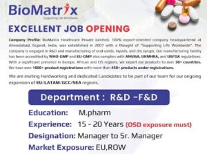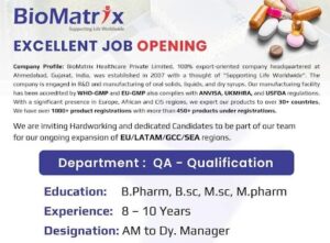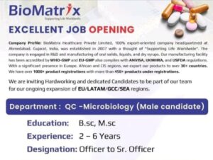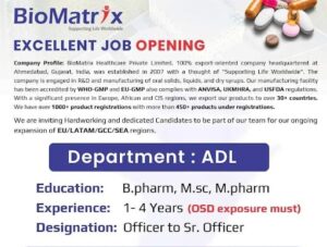 BioMatrix Healthcare Latest Job 2025 For ADL Department at Ahmedabad – Gujarat Location. Company Profile: BioMatrix Healthcare Private Limited, 100% export-oriented company headquartered at Ahmedabad, Gujarat, India, was …