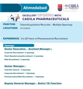 Cadila Pharma Latest job 2025 for Talent Acquisition Recruiters at Ahmedabad Location. 1. Job Vacancy in Cadila Pharma Latest job 2025 2. How to Apply in Cadila Pharma …