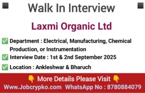 Laxmi Organic Walk-In Interview 2025 : Are you looking for a golden career opportunity in the chemical and manufacturing industry? Laxmi Organic Ltd is conducting a Walk-In Interview …
