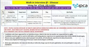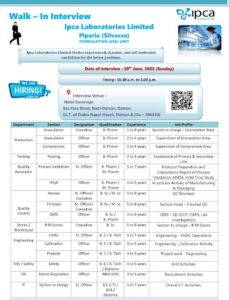 Ipca Laboratories Walk In Interview 2025 On 17th August 2025 For B. Pharm, BE, B- Tech Candidates at Vapi Location. 1. Latest Job Vacancy in Ipca Laboratories Walk …