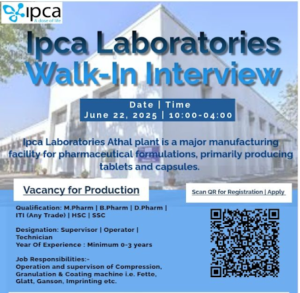 Ipca Laboratories Walk In Interview 2025 For Production, Packing & Engineering Department