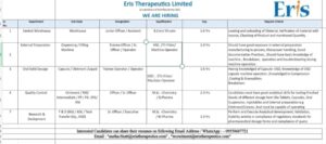 Eris Therapeutics Hiring 2025 for Warehouse, Manufacturing, Quality Control & R&D Roles in Ahmedabad. Eris Therapeutics Limited, a pharmaceutical company based in Ahmedabad, Gujarat, India, was incorporated on …