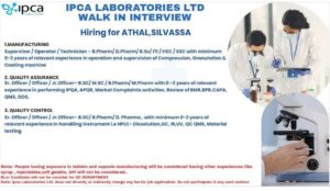 Ipca Laboratories walk In Interview 2025 For QA/QC/ Manufacturing Dept at Athal, Silvassa location. 1. Job vacancy in Ipca Laboratories walk In Interview 2025 2. Interview Schedule in …