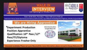 Cadila Pharma Walk In Interview For Apprentice 2025 : Cadila Pharma Limited is conducting a walk-in drive for Production department at its Dholka Plant on 24th April for …