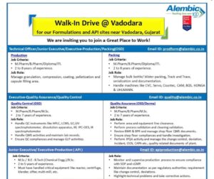 Alembic Pharma Walk In Drive for Production, Packing QA, QC department at Vadodara location. 1. Vacancy Details : Alembic Pharma (Latest Job) 2025 (A) Production & Packing (OSD) …