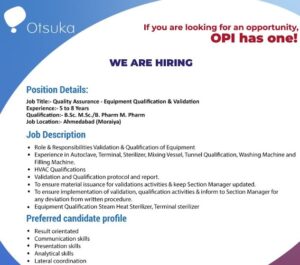 Otsuka Pharma Latest Job 2025 for Quality Assurance Department at Ahmedabad Location. 1. Job Vacancy in Otsuka Pharma Latest Job 2025 2. How to Apply in Otsuka Pharma …