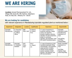 Amneal Pharmaceuticals Hiring 2025 for Pharma Job Openings in Kadi Palli Plant. Apply now for injectable manufacturing careers with top pharmaceutical company in Gujarat. 1. Amneal Pharmaceuticals Hiring …