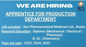 Sun Pharma fresher Hiring 2025 For Production Dept – Apprenticeship at Baska, Panchmahal, Gujarat Location. 1. Job vacancy in Sun Pharma fresher Hiring 2025 2. How to apply …