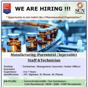 Sun Pharma Latest Job Opening 2025 for Manufacturing( Parenteral/ Injectable) Department at Halol Gujarat Plant. Sun Pharma is India’s No. 1 pharmaceutical company and a leading global player …