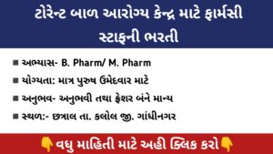 ટોરેન્ટ બાળ આરોગ્ય કેન્દ્ર માટે ફાર્મસી સ્ટાફની ભરતી.સ્થળ:- છત્રાલ તા. કલોલ જી. ગાંધીનગર 1.Vacancy Details : Torrent Children Health Centre Job 2025 ◾અભ્યાસ- B. Pharm/ M. Pharm◾યોગ્યતા: માત્ર …
