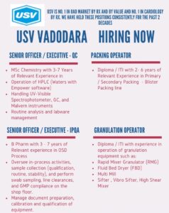 USV Private Limited Hiring 2025 Latest job opening in QC/IPQA/Packing/Production Department for Vadodara Location. MNC Company Job In Vadodara. 1. Job vacancy in USV Private Limited Hiring 2025 …