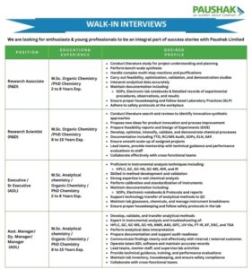 Exemed Pharmaceuticals Hiring 2025 experienced professionals for Engineering, QC, ADL, and EHS departments at its Luna (Vadodara) facility. Candidates with 3–5 years of experience in the pharma or …