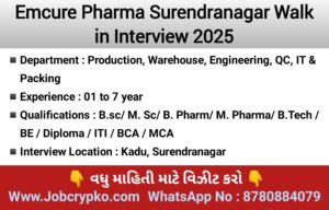 Intas Pharma Walk In Interview 2025 Conduct on 30 August 2025 For B. Pharmacy/M Pharmacy / Msc/Bsc/BE /Diploma/ITI Qualifications candidates at Ahmedabad Location. 1. Latest Job Vacancy in …
