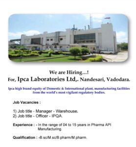 Ipca Laboratories Hiring 2025 for Warehouse and IPQA department at Nandesari, Vadodara. 1. Job available in Ipca Laboratories Hiring 2025 2. How to apply in Ipca Laboratories Hiring …