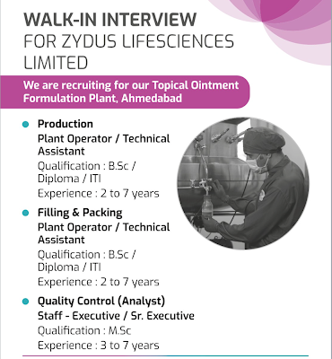 Zydus Lifesciences Walk-In Interview 2025 – Explore pharma jobs in Ahmedabad for Production, Filling & Packing, and Quality Control (Analyst) roles. Apply now to join India’s leading pharmaceutical company.