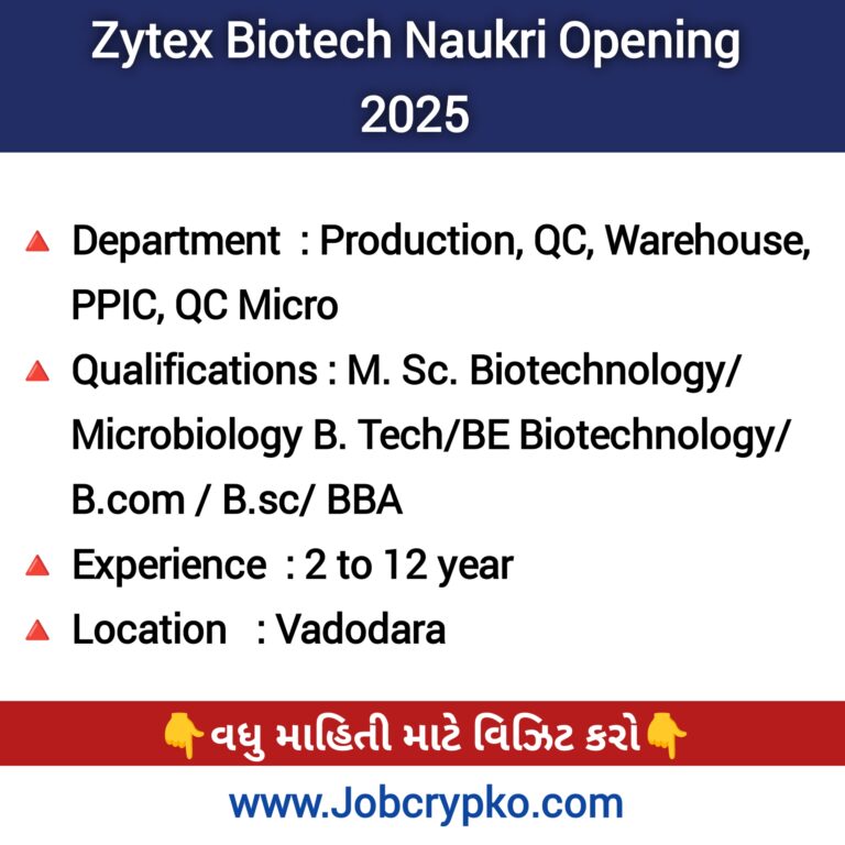 Zytex Biotech Naukri Opening 2025